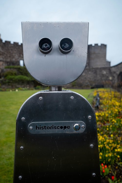 Summer 2022 saw the second generation ‘Historiscope’ installed at Stirling Castle. Situated in the castle’s historic Queen Anne Gardens, it allowed viewers to see back to the mid-16th century. Scenes through the historiscope show Mary Queen of Scots and her entourage as they rode out to join a grand pageant en route to the baptism of her son, who would become King James the 1st of the United Kingdom.