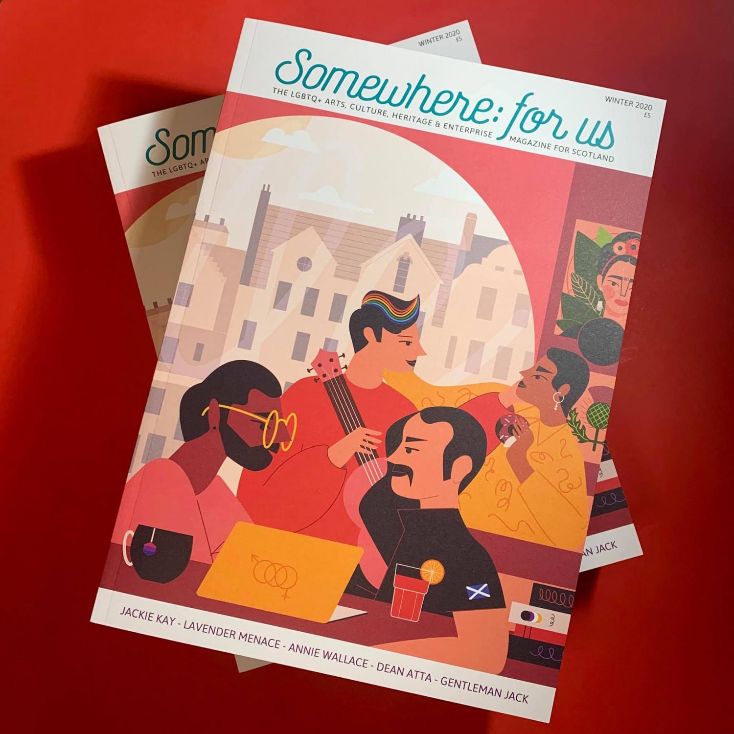 After working closely with LGBT+ people in the Edinburgh Festival Fringe and through their own queer business network, Kathryn and Thomas set up Somewhere: For Us, a magazine made by and for Scotland’s LGBT+ community.
